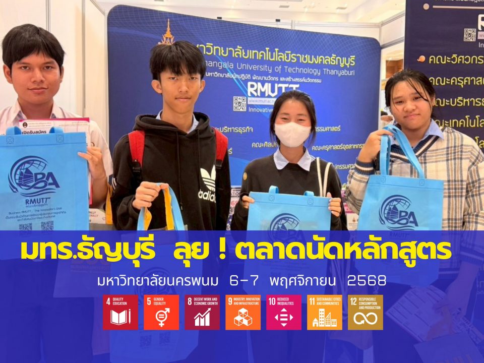 ฝ่ายเเนะเเนวการศึกษา อาชีพ และศิษย์เก่าสัมพันธ์ กองพัฒนานักศึกษา มหาวิทยาลัยเทคโนโลยีราชมงคลธัญบุรี ได้เข้าร่วมกิจกรรม “นิทรรศการแนะแนวการศึกษาต่อและอาชีพ ” โดยคณะเทคโนโลยีคหกรรมศาสตร์ คณะศิลปศาสตร์ คณะวิศวกรรมศาสตร์ คณะบริหารธุรกิจ และคณะวิทยาศาสตร์และเทคโนโลยี เข้าร่วมเผยแพร่หลักสูตร เเละการสมัครรอบ TCAS 68 แก่โรงเรียนคณะราษฎรบำรุงปทุมธานี นักเรียนระดับชั้นมัธยมศึกษาชั้นปีที่ 6 โดยมีจำนวนนักเรียน 540 คน ณ หอประชุมโดม โรงเรียนคณะราษฎรบำรุงปทุมธานี จังหวัดปทุมธานี วันที่ 23 มกราคม 2568