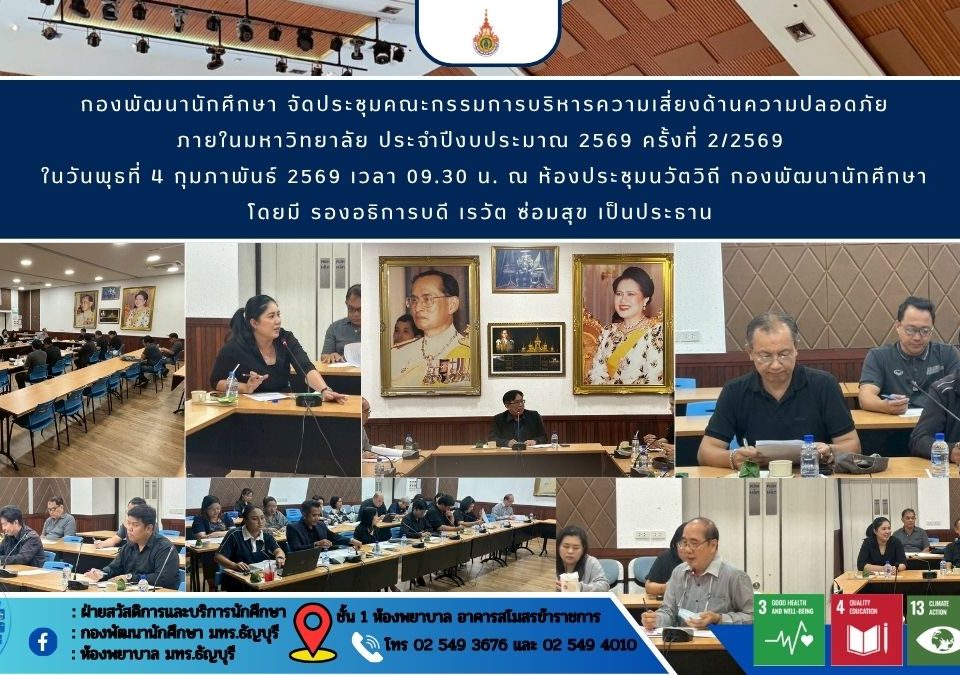 กองพัฒนานักศึกษา จัดประชุมคณะกรรมการบริหารความเสี่ยงด้านความปลอดภัย ภายในมหาวิทยาลัย ประจำปีงบประมาณ 2569 ครั้งที่ 2/2569