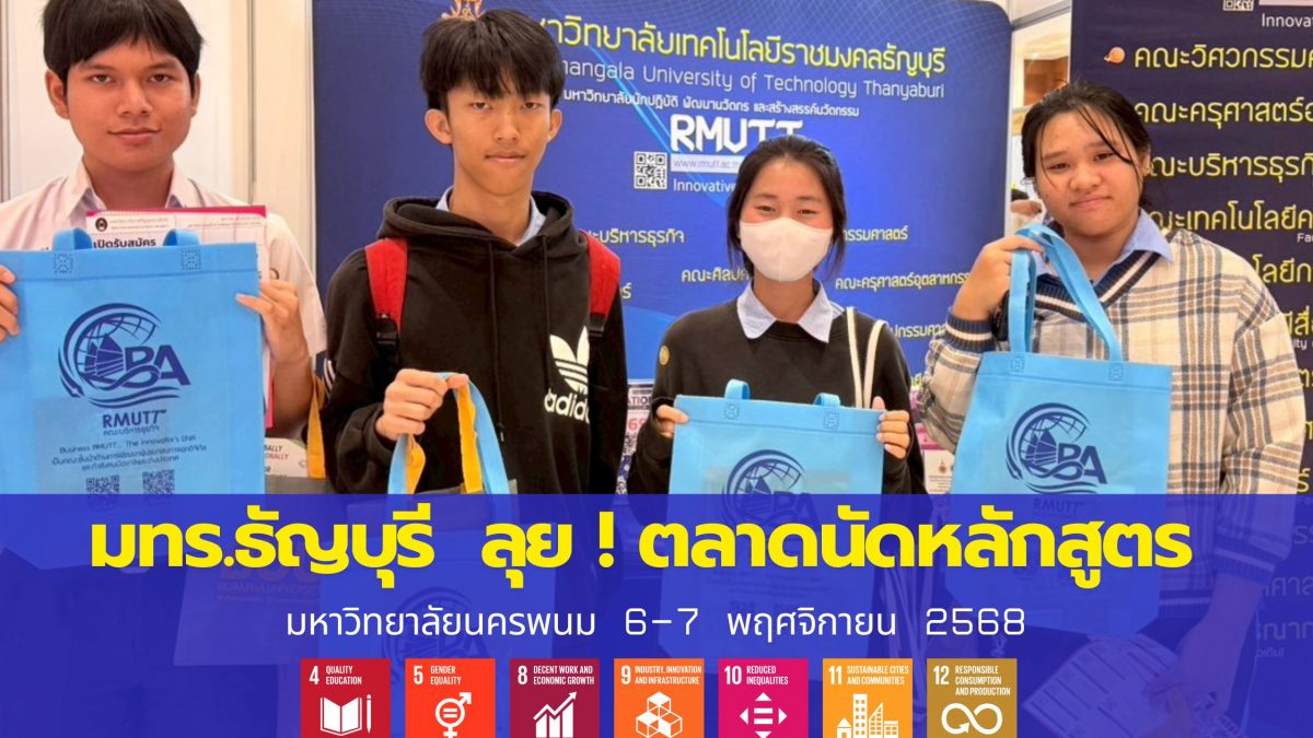 มหาวิทยาลัยเทคโนโลยีราชมงคลธัญบุรี กองพัฒนานักศึกษา ฝ่ายแนะแนวการศึกษา อาชีพและศิษย์เก่าสัมพันธ์ เข้าร่วมกิจกรรมนิทรรศการหลักสูตรอุดมศึกษา ครั้งที่ 27 Guiding Dreams Building Futures “ชี้ทางฝัน สร้างอนาคต” จัดขึ้นเพื่อประชาสัมพันธ์เผยแพร่หลักสูตรระดับอุดมศึกษาทั้งหลักสูตรไทยและนานาชาติ ข้อมูลทางการศึกษา แก่นักเรียนชั้นมัธยมศึกษาตอนปลาย ครู ผู้ปกครอง รวมทั้งผู้สนใจทั่วไป โดยมีสถาบันการศึกษาเข้าร่วมกิจกรรมมากกว่า 66 สถาบัน ณ หอประชุมวชิรบพิตร มหาวิทยาลัยนครพนม วันที่ 6 – 7 พฤศจิกายน 2568 จังหวัดนครพนม