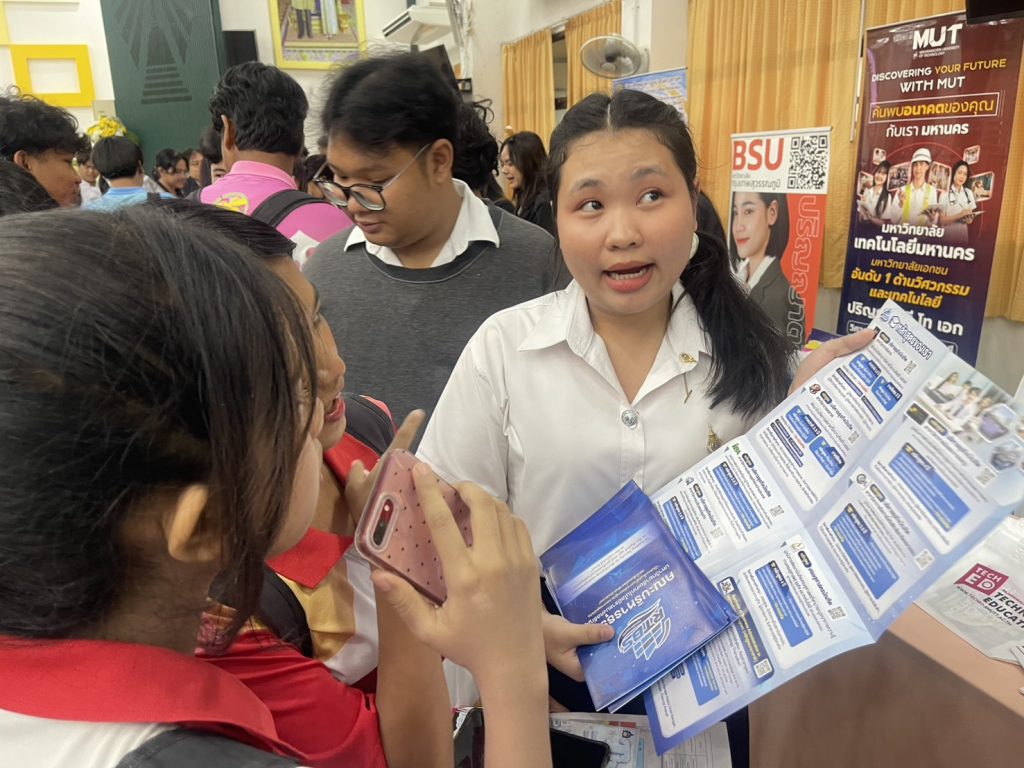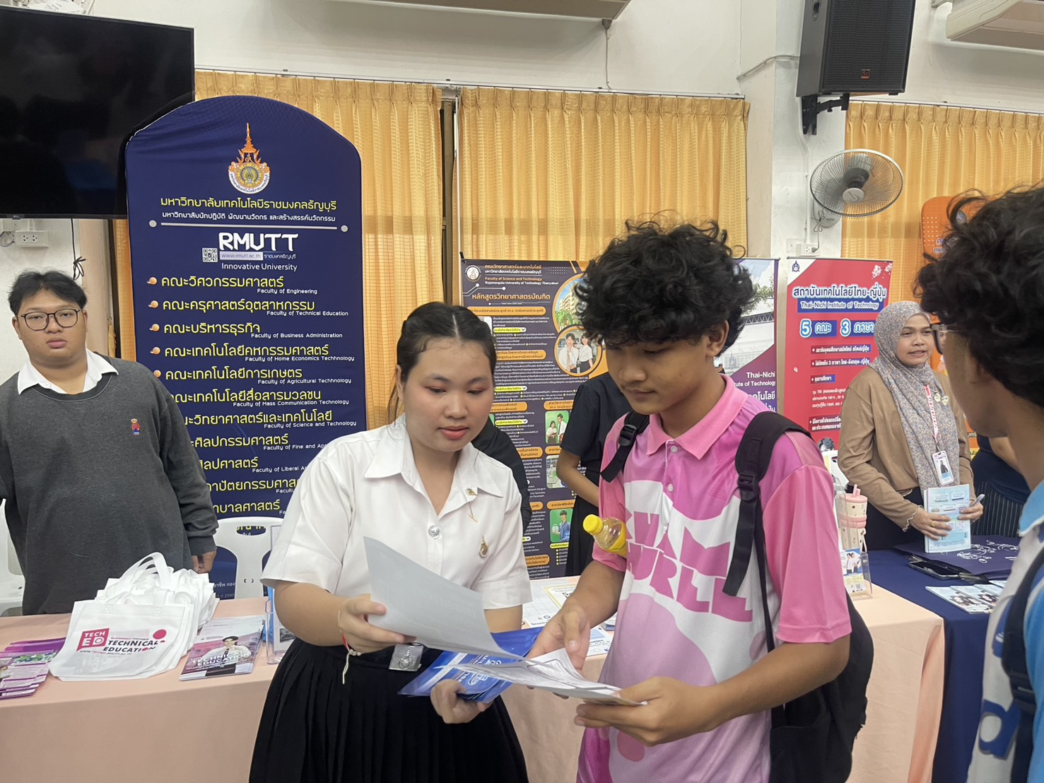 ฝ่ายเเนะเเนวการศึกษา อาชีพ และศิษย์เก่าสัมพันธ์ กองพัฒนานักศึกษา มหาวิทยาลัยเทคโนโลยีราชมงคลธัญบุรี ได้เข้าร่วมกิจกรรม นิทรรศการแนะเเนวศึกษา ระดับมัธยมศึกษาปีที่ 6 ปีการศึกษา 2568 โรงเรียนมัธยมวัดหนองจอก จังหวัดกรุงเทพมหานคร เพื่อเปิดโอกาสให้ผู้ปกครองและนักเรียนเข้าเยี่ยมชมบูธสถาบันการศึกษา 30 กว่าสถาบัน โดยมีคณะวิทยาศาสตร์และเทคโนโลยี เข้าร่วมกิจกรรมในครั้งนี้ วันพุธที่ 19 พฤศจิกายน 2568 ณ โดม ณ หอประชุมโรงเรียนมัธยมวัดหนองจอก จังหวัดกรุงเทพมหานคร
