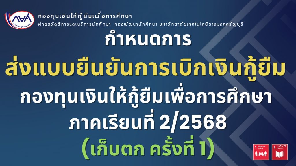 กำหนดการส่งแบบยืนยันการเบิกเงินกู้ยืม กองทุนเงินให้กู้ยืมเพื่อการศึกษา ภาคเรียนที่ 2/2568 (เก็บตก ครั้งที่1)