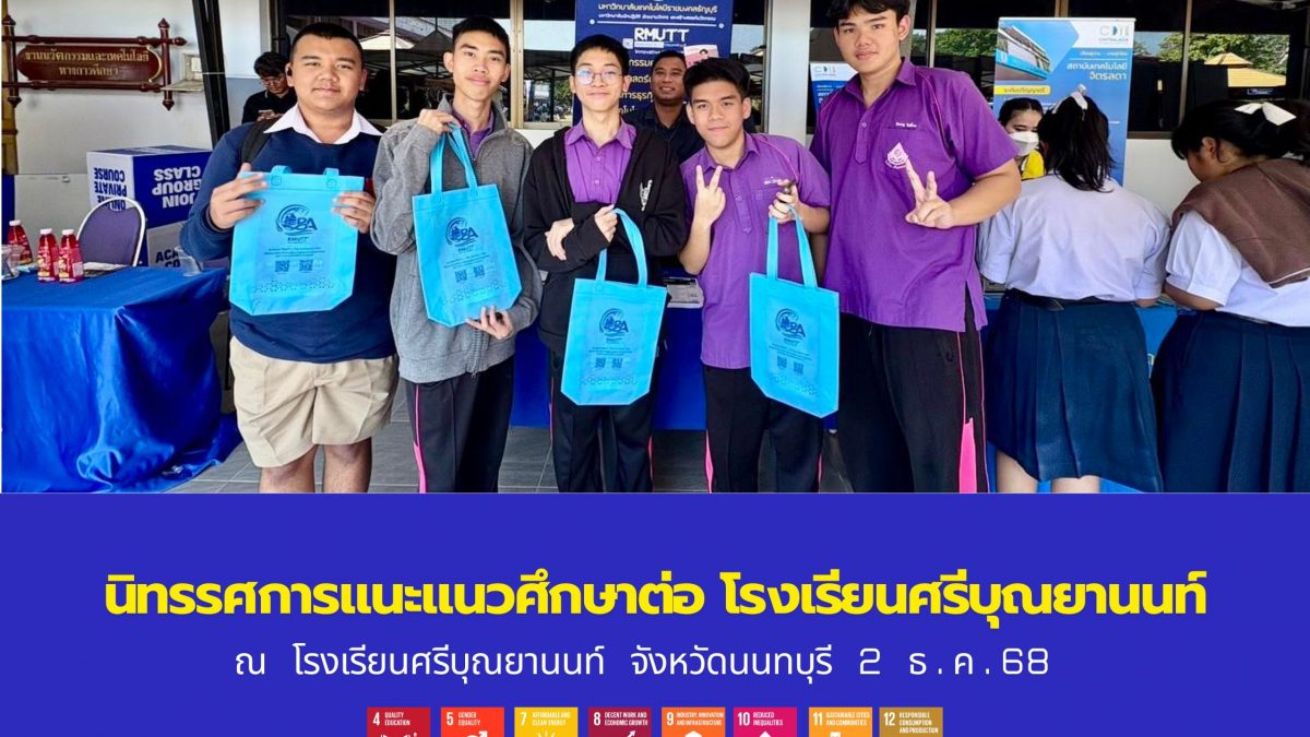 ฝ่ายเเนะเเนวการศึกษา อาชีพ และศิษย์เก่าสัมพันธ์ กองพัฒนานักศึกษา มหาวิทยาลัยเทคโนโลยีราชมงคลธัญบุรี ได้เข้าร่วมกิจกรรม Play and Learn เเละนิทรรศการแนะเเนวศึกษา ระดับมัธยมศึกษาปีที่ 6 ปีการศึกษา 2568 ของโรงเรียนศรีบุณยานนท์ เป็นโรงเรียนประจำจังหวัดนนทบุรีเปิดโอกาสให้ผู้ปกครองและนักเรียนเข้าเยี่ยมชมบูธสถาบันการศึกษา 15 กว่าสถาบันวันอังคารที่ 2 ธันวาคม 2568 ณ โรงเรียนศรีบุณยานนท์ จังหวัดนนทบุรี