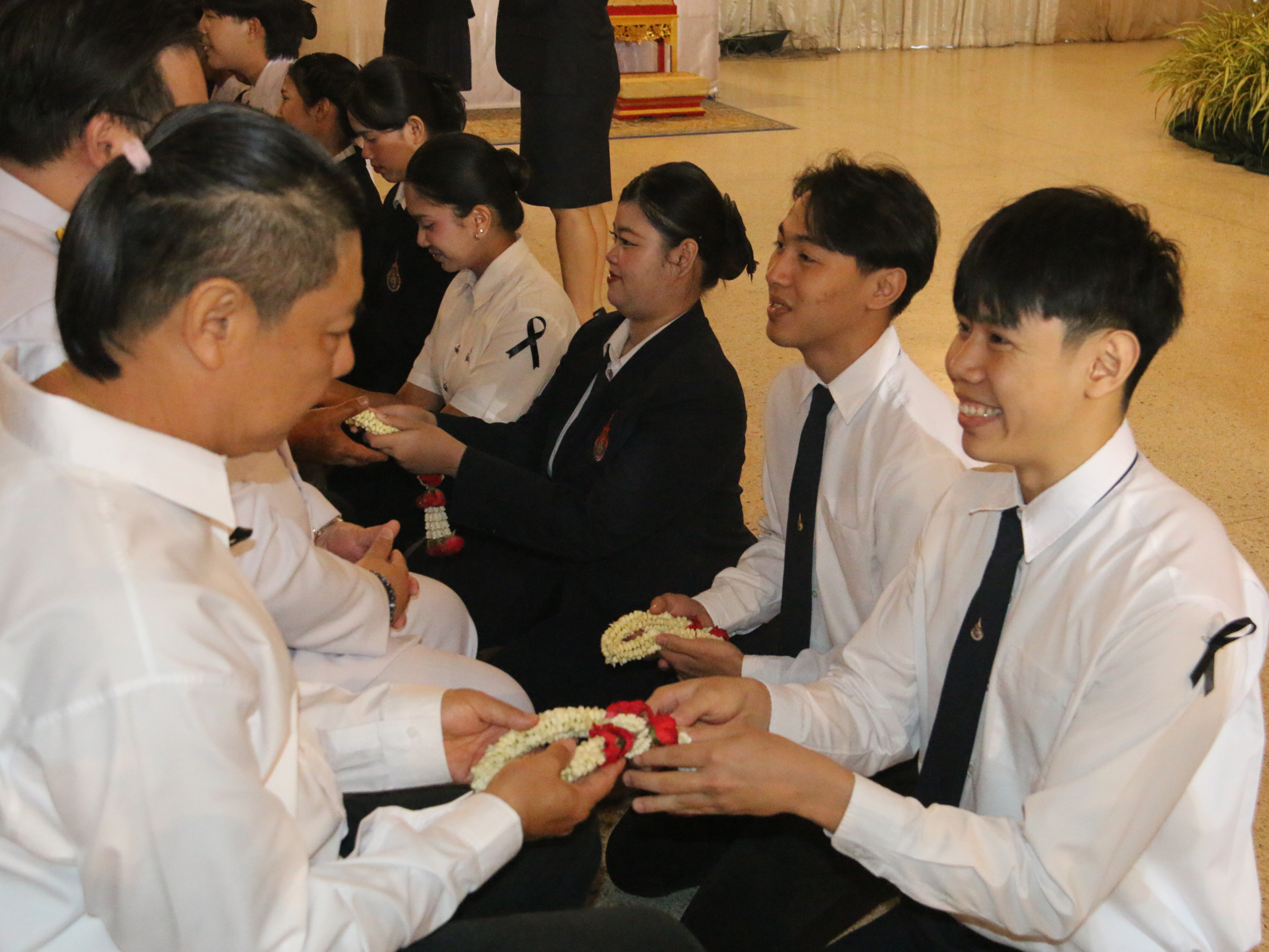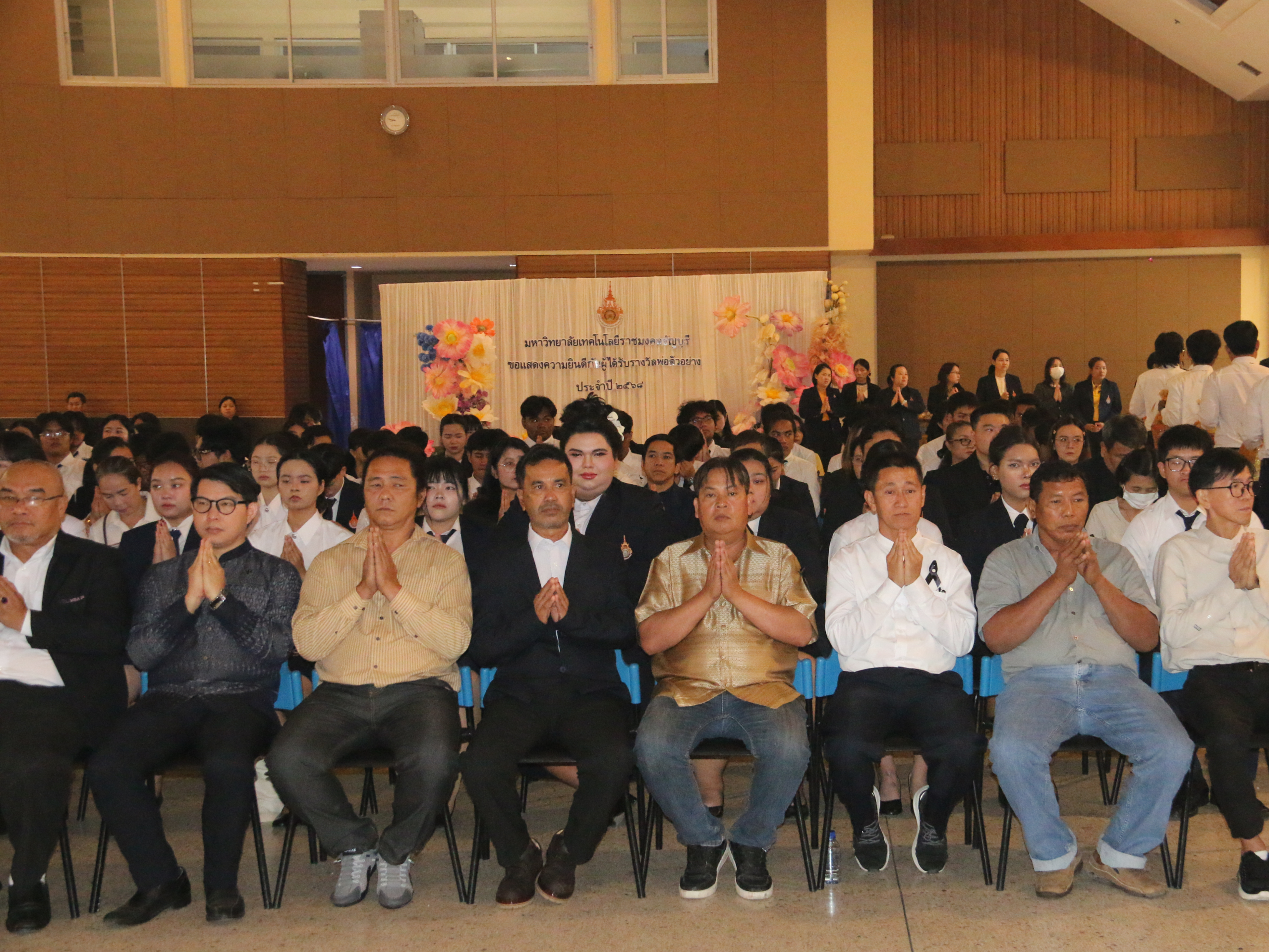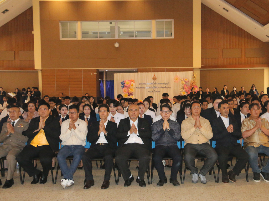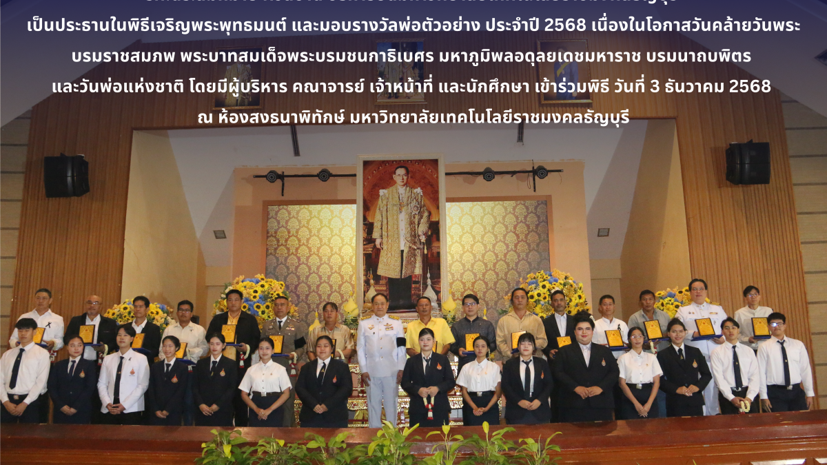 รศ.ดร.สมหมาย ผิวสอาด อธิการบดีมหาวิทยาลัยเทคโนโลยีราชมงคลธัญบุรี เป็นประธานในพิธีเจริญพระพุทธมนต์ และมอบรางวัลพ่อตัวอย่าง ประจำปี 2568 เนื่องในโอกาสวันคล้ายวันพระบรมราชสมภพ พระบาทสมเด็จพระบรมชนกาธิเบศร มหาภูมิพลอดุลยเดชมหาราช บรมนาถบพิตร และวันพ่อแห่งชาติ โดยมีผู้บริหาร คณาจารย์ เจ้าหน้าที่ และนักศึกษา เข้าร่วมพิธี วันที่ 3 ธันวาคม 2568 ณ ห้องสงธนาพิทักษ์ มหาวิทยาลัยเทคโนโลยีราชมงคลธัญบุรี