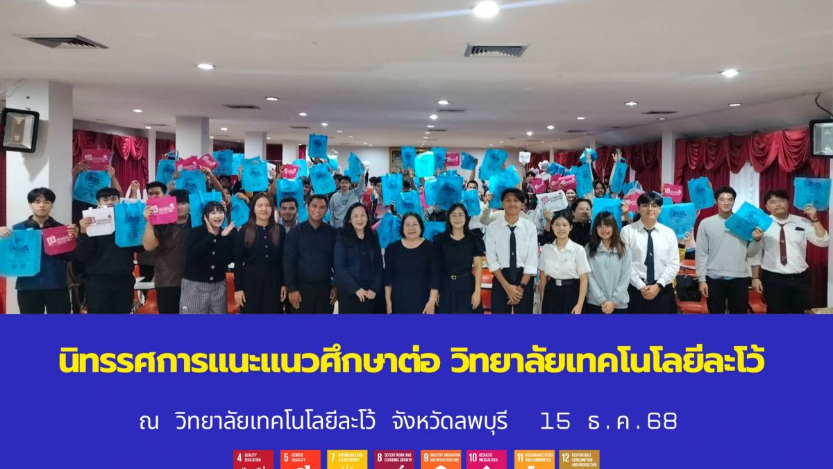 ฝ่ายเเนะเเนวการศึกษา อาชีพ และศิษย์เก่าสัมพันธ์ กองพัฒนานักศึกษา มหาวิทยาลัยเทคโนโลยีราชมงคลธัญบุรี ได้เข้าร่วมกิจกรรมแนะเเนวศึกษาต่อ ระดับประกาศนียบัตรวิชาชีพชั้นสูง ชั้นปีที่ 2 ของวิทยาลัยเทคโนโลยีละโว้ จังหวัดลพบุรี เปิดโอกาสให้นักศึกษา คณาจารย์สอบถาม โดยมีคณะบริหารธุรกิจ และคณะครุศาสตร์อุตสาหกรรม เข้าร่วมในครั้งนี้ วันจันทร์ที่ 15 ธันวาคม 2568 ณ วิทยาลัยเทคโนโลยีละโว้ จังหวัดลพบุรี