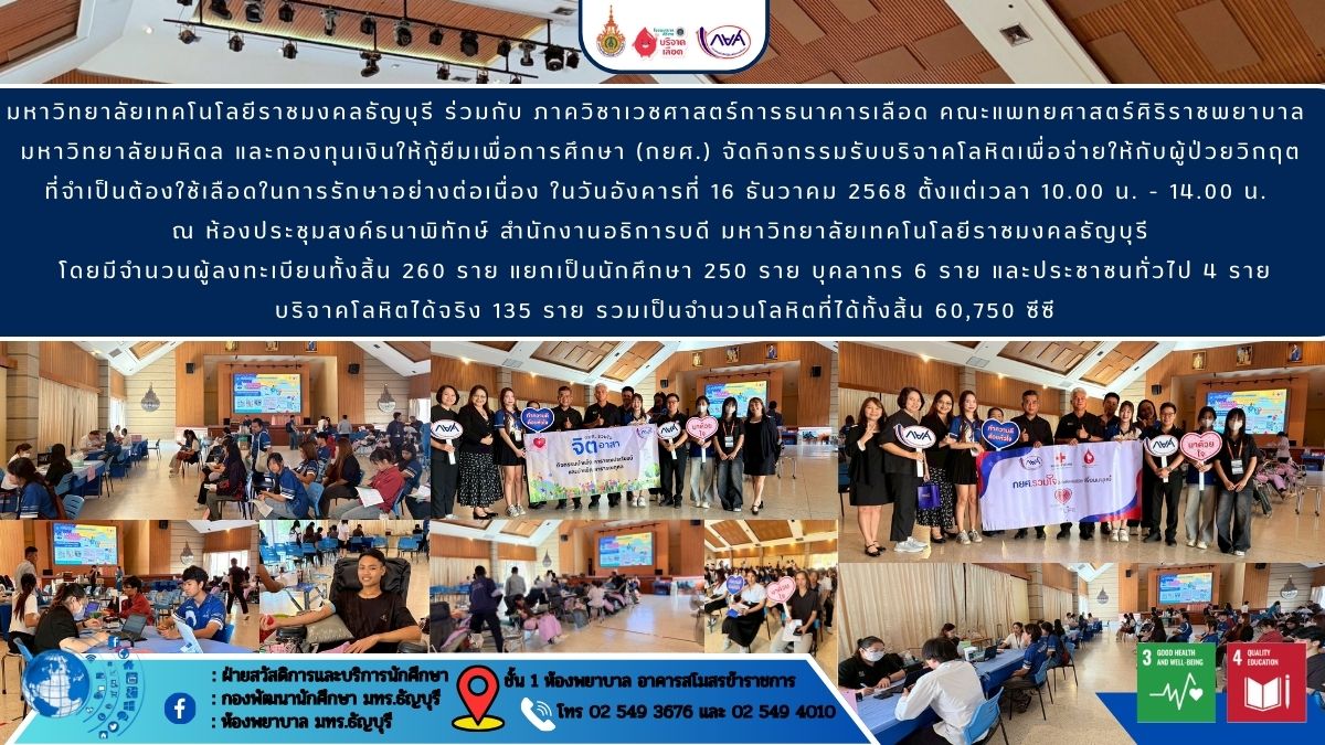 มหาวิทยาลัยเทคโนโลยีราชมงคลธัญบุรี ร่วมกับ ภาควิชาเวชศาสตร์การธนาคารเลือด คณะแพทยศาสตร์ศิริราชพยาบาล