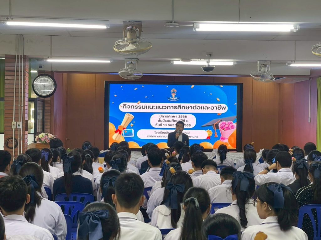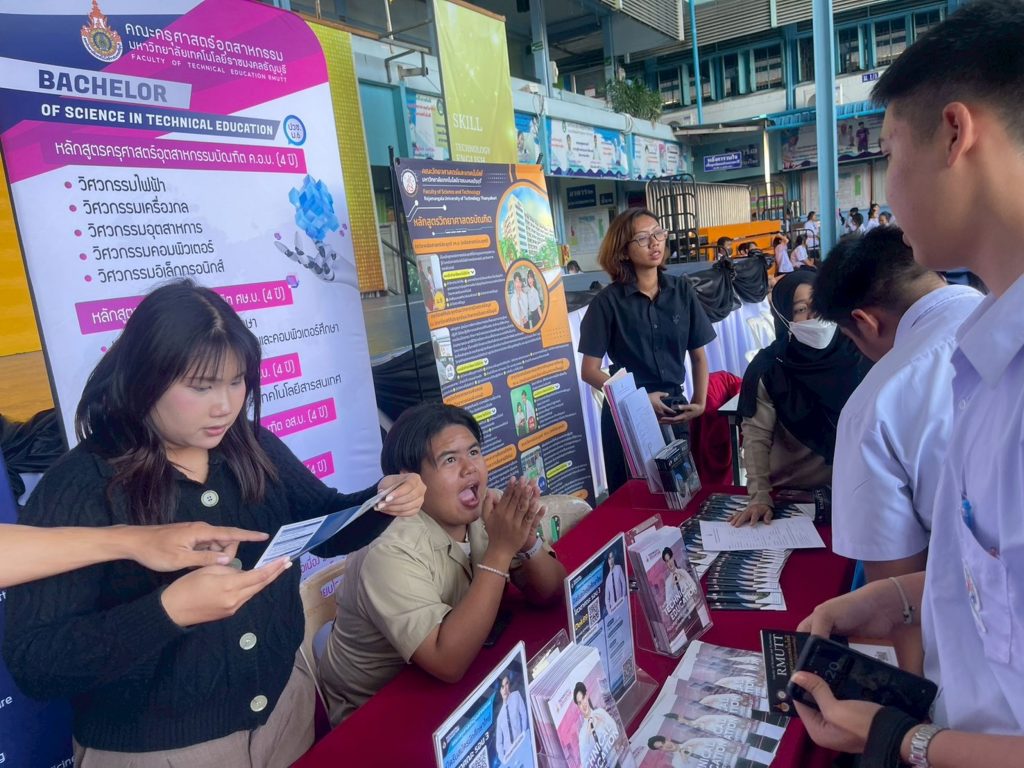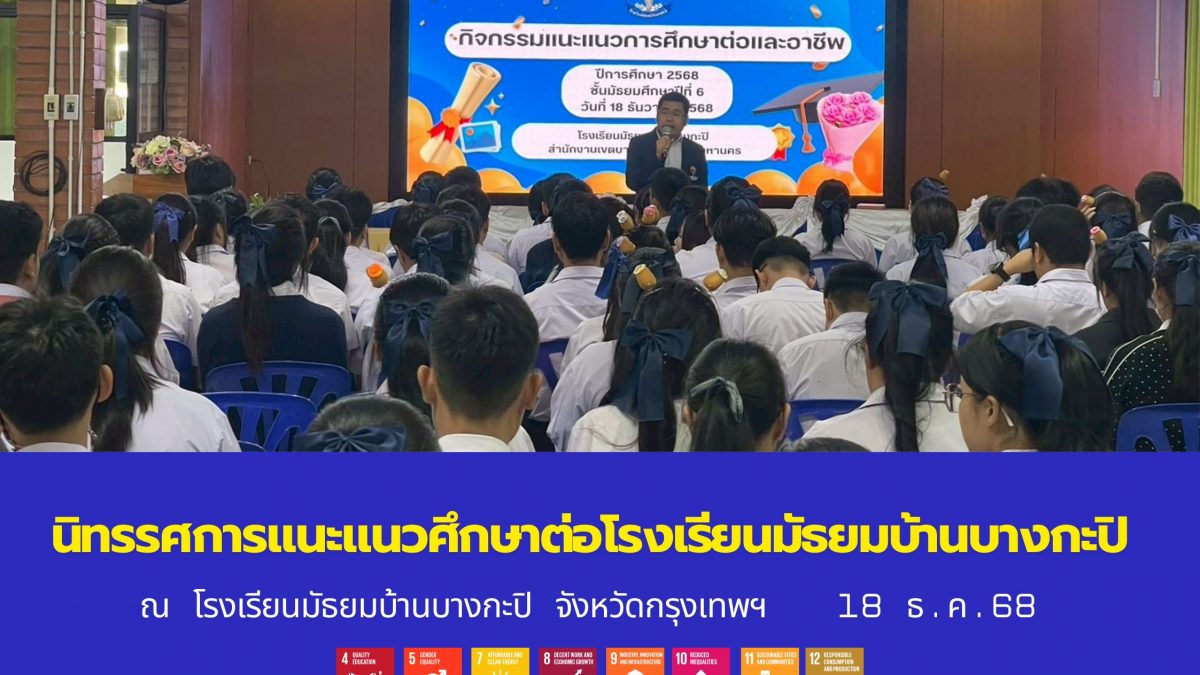 ฝ่ายเเนะเเนวการศึกษา อาชีพ และศิษย์เก่าสัมพันธ์ กองพัฒนานักศึกษา มหาวิทยาลัยเทคโนโลยีราชมงคลธัญบุรี ได้เข้าร่วมกิจกรรมแนะเเนวศึกษาต่อ ระดับมัธยมศึกษาปีที่ 6 ของโรงเรียนมัธยมบ้านบางกะปิ สังกัดกรุงเทพมหานคร จังหวัดกรุงเทพมหานคร เปิดโอกาสให้นักศึกษา คณาจารย์สอบถาม โดยมีคณะครุศาสตร์อุตสาหกรรม คณะเทคโนโลยีการเกษตร คณะบริหารธุรกิจ และคณะวิทยาศาสตร์และเทคโนโลยี เข้าร่วมในครั้งนี้ วันพฤหัสบดีที่ 18 ธันวาคม 2568 ณ โรงเรียนมัธยมบ้านบางกะปิ จังหวัดกรุงเทพมหานคร