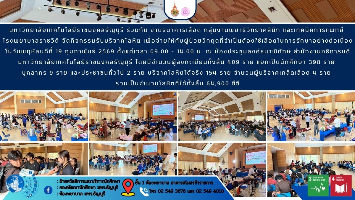 มหาวิทยาลัยเทคโนโลยีราชมงคลธัญบุรี ร่วมกับ งานธนาคารเลือด กลุ่มงานพยาธิวิทยาคลินิก และเทคนิคการแพทย์