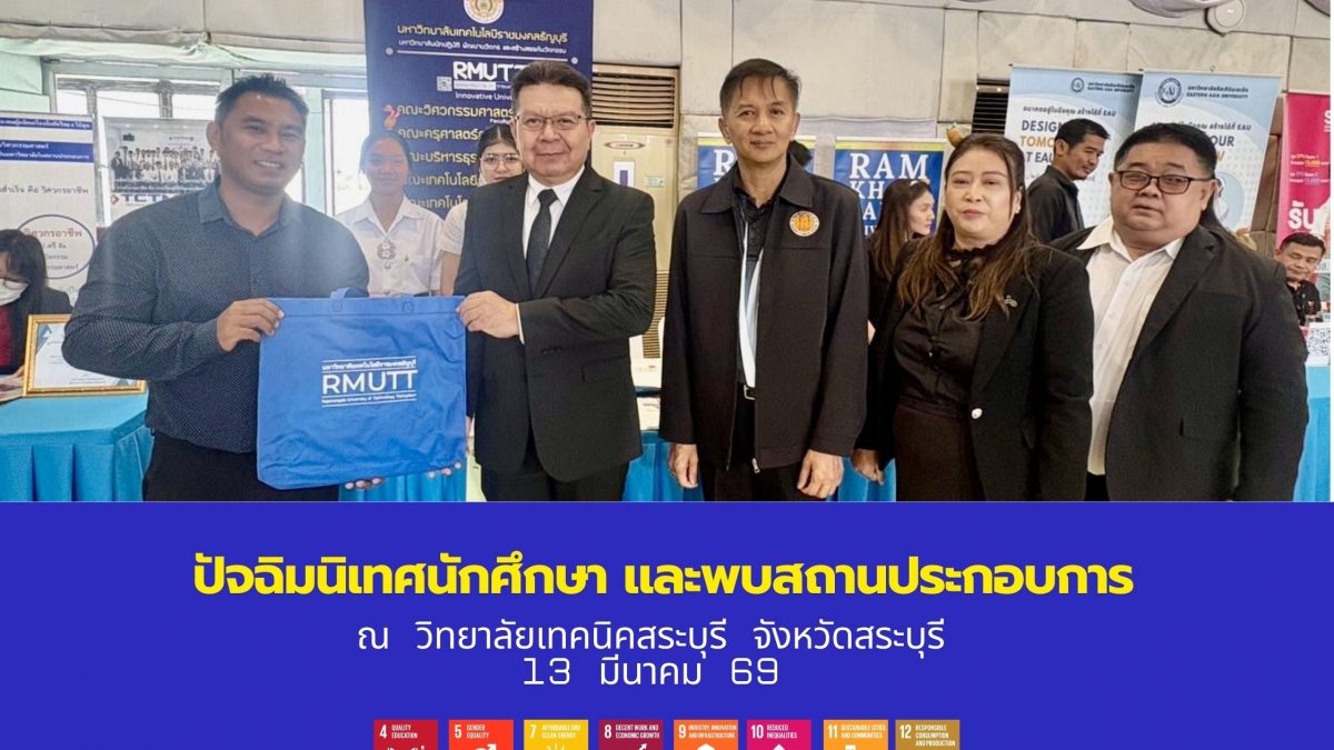 ฝ่ายเเนะเเนวการศึกษา อาชีพ และศิษย์เก่าสัมพันธ์ กองพัฒนานักศึกษา มหาวิทยาลัยเทคโนโลยีราชมงคลธัญบุรี ได้เข้าร่วมกิจกรรม “ปัจฉิมนิเทศนักศึกษาระดับประกาศนียบัตรวิชาชีพ ชั้นปีที่ 3 และประกาศนียบัตรวิชาชีพชั้นสูง ชั้นปีที่ 2 ” วิทยาลัยเทคนิคสระบุรี อาชีวศึกษาได้ให้เป็นที่ตั้งของสถาบันการอาชีวศึกษา โดยวิทยาลัยเทคนิคสระบุรี อยู่ภายใต้การบริหาร ของสถาบันการอาชีวศึกษาภาคกลาง 4 (ปวช.-ปวส.) และระดับปริญญาตรี โดยมีสถาบัน มากกว่า 20 สถาบัน และสถานประกอบการให้นักเรียน คณาจารย์สอบถาม หลักสูตร สาขา คณะที่รองรับ ของนักเรียนที่สนใจศึกษาต่อในระดับปริญญาตรี ในรอบรับตรง ของมหาวิทยาลัยฯ ณ ห้องประชุม วิทยาลัยเทคนิคสระบุรี จังหวัดสระบุรี