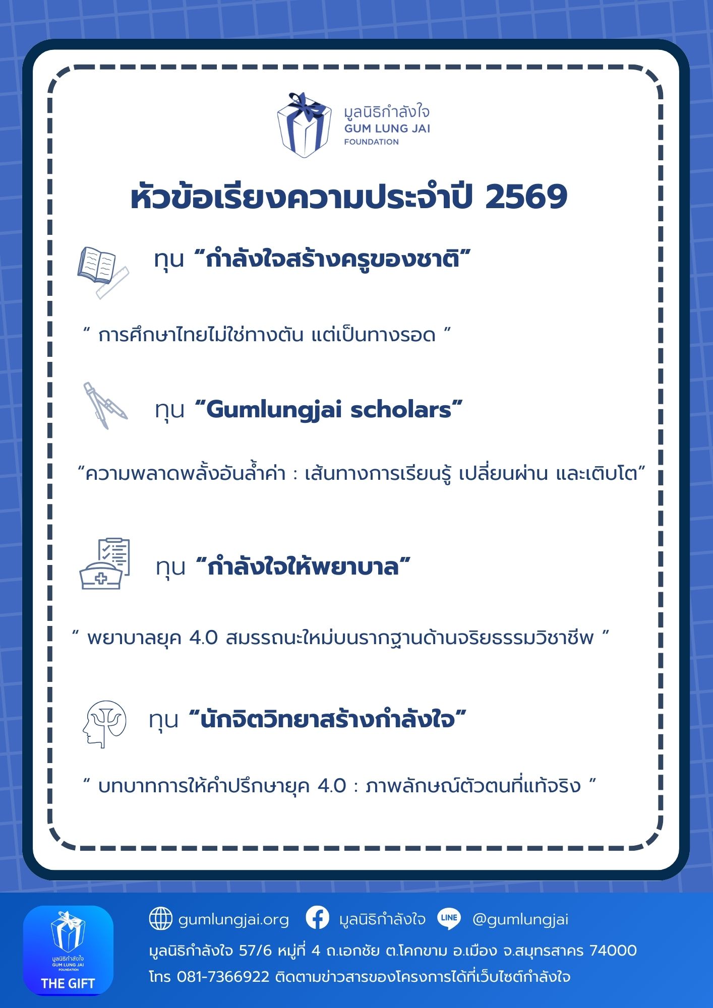 การขอผ่อนผันการเข้ารับราชการทหาร กองประจำการเพื่อลาศึกษาต่อมีนาคม 26, 2026 Published by ไชยสิทธิ์ พงษ์ทองคำ on มีนาคม 26, 2026 Categories การศึกษา/ทุนการศึกษา ข่าวประชาสัมพันธ์ ข่าวล่าสุด Tags Share0 ไชยสิทธิ์ พงษ์ทองคำ Related postsมีนาคม 26, 2026การขอผ่อนผันการเข้ารับราชการทหาร กองประจำการเพื่อลาศึกษาต่อRead moreมีนาคม 26, 2026บริษัท ทีเอสแอลเอ็มจิเนียร์ริ่ง จำกัด เปิดรับสมัครงาน ตำแหน่ง วิศวกรเครื่องกลRead moreมีนาคม 25, 2026การประชุมคณะกรรมการภาวะการมีงานทำเพื่อพัฒนาหาแนวทางเก็บข้อมูลภาวะการมีงานทำของบัณฑิตRead more Comments are closed.