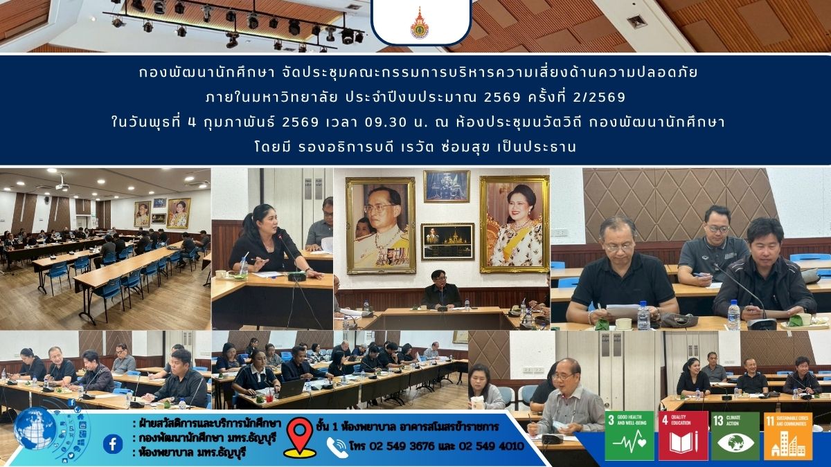 รศ.ดร.สมหมาย ผิวสอาด อธิการบดีมหาวิทยาลัยเทคโนโลยีราชมงคลธัญบุรี เป็นประธานในพิธี “บำเพ็ญกุศล 100 วันอุทิศถวายแด่สมเด็จพระนางเจ้าสิริกิติ์ พระบรมราชินีนาถ พระบรมราชชนนีพันปีหลวง”กุมภาพันธ์ 2, 2026ตรวจสอบรายชื่อผู้แสดงตนขอผ่อนผันการเกณฑ์ทหาร ประจำปีการศึกษา 2568กุมภาพันธ์ 5, 2026 Published by ไชยสิทธิ์ พงษ์ทองคำ on กุมภาพันธ์ 4, 2026 Categories ข่าวประชาสัมพันธ์ ข่าวล่าสุด ทหาร/นักศึกษาวิชาทหาร Tags SD RMUTTกพน.มทร.ธัญบุรีกองพัฒนานักศึกษา มทร.ธัญบุรีมหาวิทยาลัยเทคโนโลยีราชมงคลรัญบุรี Share0 ไชยสิทธิ์ พงษ์ทองคำ Related postsมีนาคม 26, 2026มูลนิธิกำลังใจ รับสมัครโครงการทุนกำลังใจปริญญาตรี ประจำปีการศึกษา 2569Read moreมีนาคม 26, 2026การขอผ่อนผันการเข้ารับราชการทหาร กองประจำการเพื่อลาศึกษาต่อRead moreมีนาคม 26, 2026บริษัท ทีเอสแอลเอ็มจิเนียร์ริ่ง จำกัด เปิดรับสมัครงาน ตำแหน่ง วิศวกรเครื่องกลRead more Comments are closed.