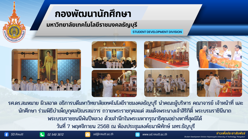 ติดต่อสอบถามรายละเอียดเพิ่มเติมได้ที่ 088 2783362 หรือ ดร.ณรัฐศิริ เต๊ะอุ่ยรุ่งศิริ ผู้ประสานโครงการ 089 695 4888